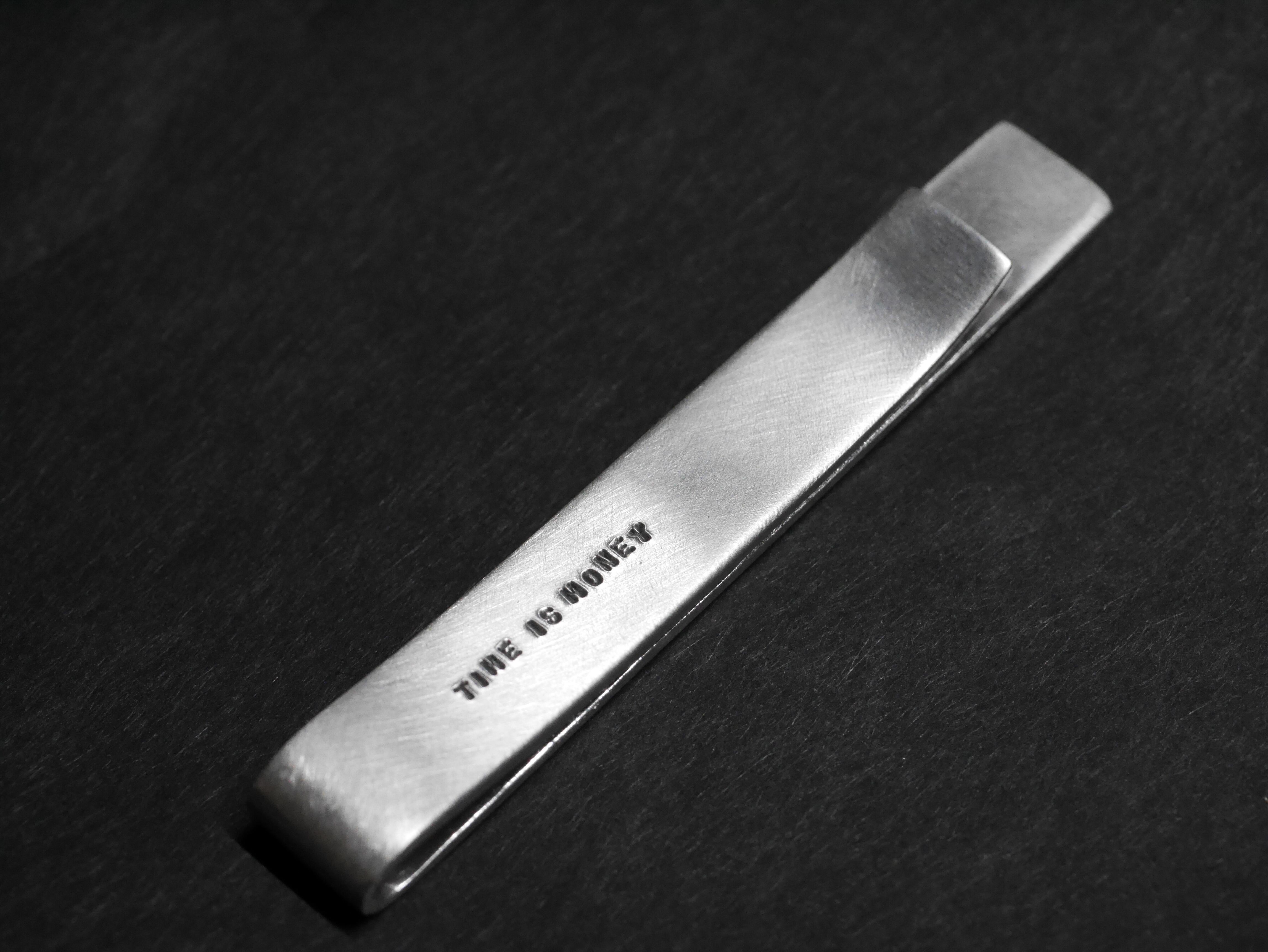 シンプルなシルバーのマネークリップに30文字刻印を入れられます。